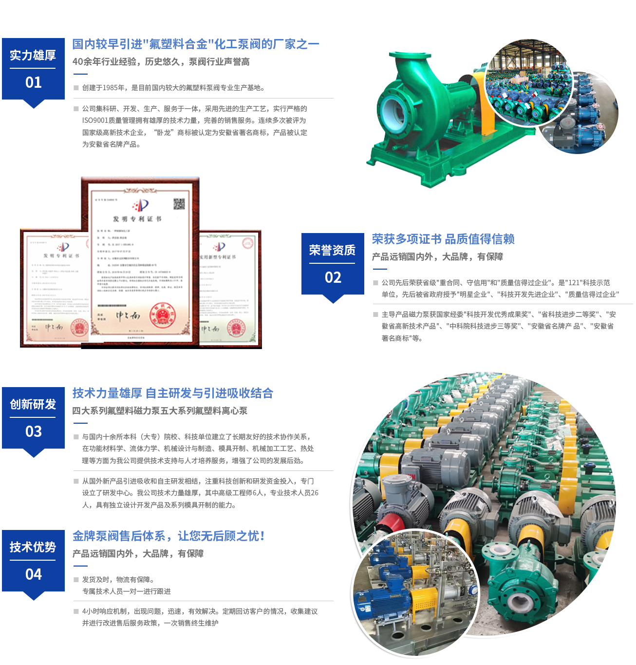 ??安徽臥龍泵閥股份有限公司前身涇縣氟塑料制品廠(chǎng)創(chuàng)建于1985年,是國(guó)內(nèi)較早引進(jìn)中科院上海有機(jī)化學(xué)研究所專(zhuān)利材料——"氟塑料合金",并以此耐腐蝕材料專(zhuān)業(yè)生產(chǎn)制造化工泵、閥、襯氟管道等產(chǎn)品的企業(yè)。公司經(jīng)過(guò)歷次的改制變革,2015年更名為安徽臥龍泵閥股份有限公司。